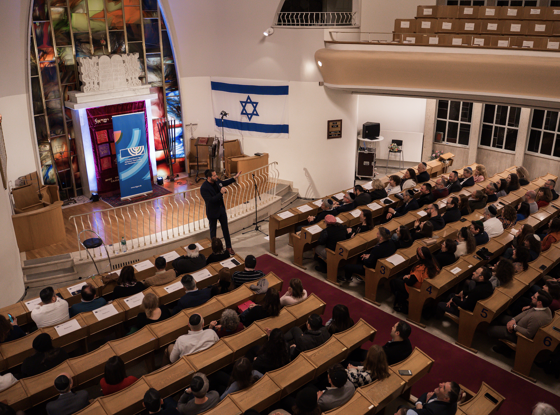 Am 13. Januar 2024 trat der aus Israel stammende US-Comedian Modi Rosenfeld im Rahmen eines Spendenabends vor 200 Gästen in der Synagoge der Jüdischen Gemeinde in Düsseldorf auf.
